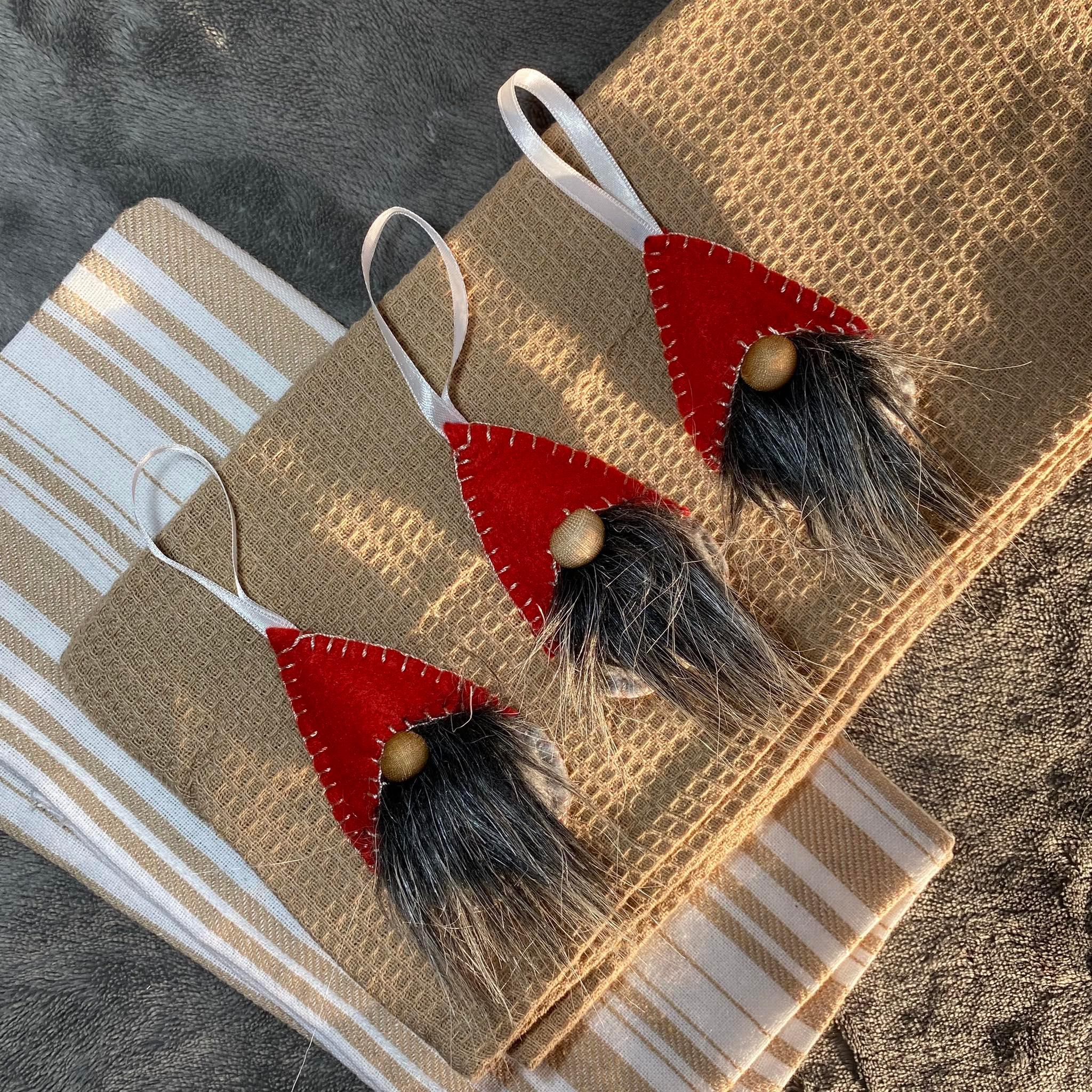 A manó díszek kézi varrással készültek gyapjúfilcből.