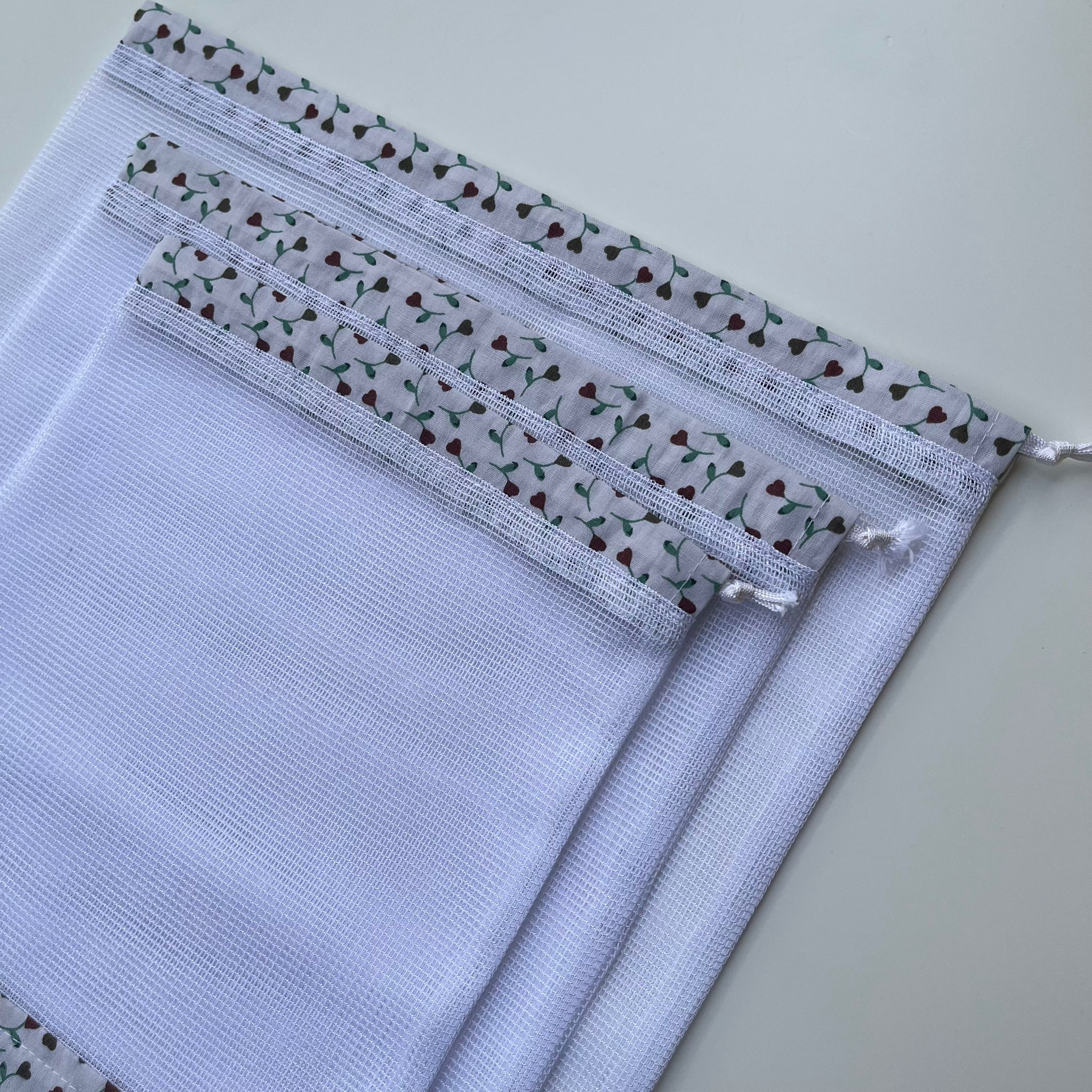 A zsákokban vásárolhatsz bármilyen gyümölcsöt vagy zöldséget, tökéletesen helyettesítik az egyszer használatos műanyag zacskókat. Nem csak környezettudatosak, de szépek is. Az különféle mintáknak köszönhetően mindenki megtalálhatja a számára legkedvesebb darabokat.